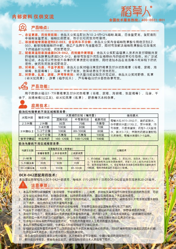 42%噁唑·氰氟EC,35%噁唑·氰氟EC, 15%噁唑酰草胺EC,36%噁唑草·氯吡酯·氰氟EC, 30%二氯喹·噁唑胺·氰氟酯OD ,
